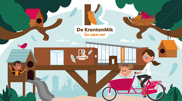 De afgelopen maanden hebben we twee mooie projecten afgerond voor UN1EK! Voor De Krentenmik (Opvang) verzorgden we een complete rebranding. Hun nieuwe logo, visuele identiteit en website brengt het warme, huiselijke gevoel van “een warm nest” nog beter naar voren. We legden hier een mooie connectie met het Oranjepark ('t Hof) in Vlaardingen waar we inspiratie haalden uit de vogelrijke omgeving.